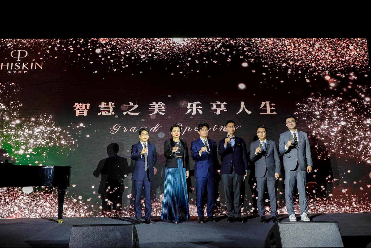 在艺术与美融合的氛围中,PHISKIN芙艾医疗CFO何刚先生、CHO王文涛女士以及来自PHISKIN芙艾医疗的三位医师——金锡柱院长、洪恺志院长、井上祐一医生和PHISKIN芙艾医疗 合肥医疗门诊负责人 姚瑞琦先生共同上台祝词,感谢与会来宾的热情支持,也祝福大家度过美好的夜晚。